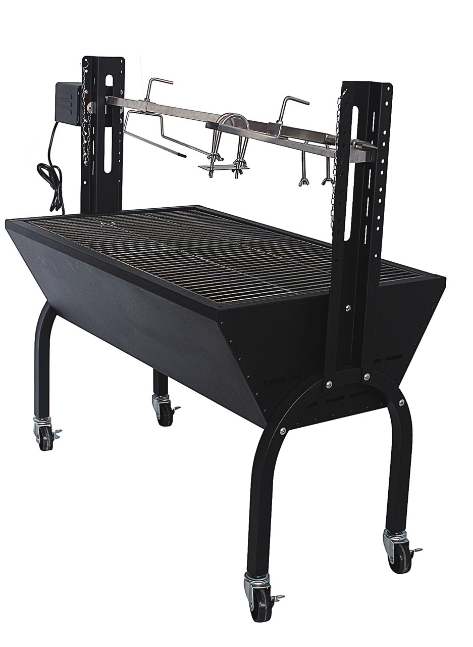 Ciri rotisserie ini meletakkan produk di antara gril arang klasik dan peralatan khusus yang sering dipasangkan Ketuhar Piza Gas di dapur luar.